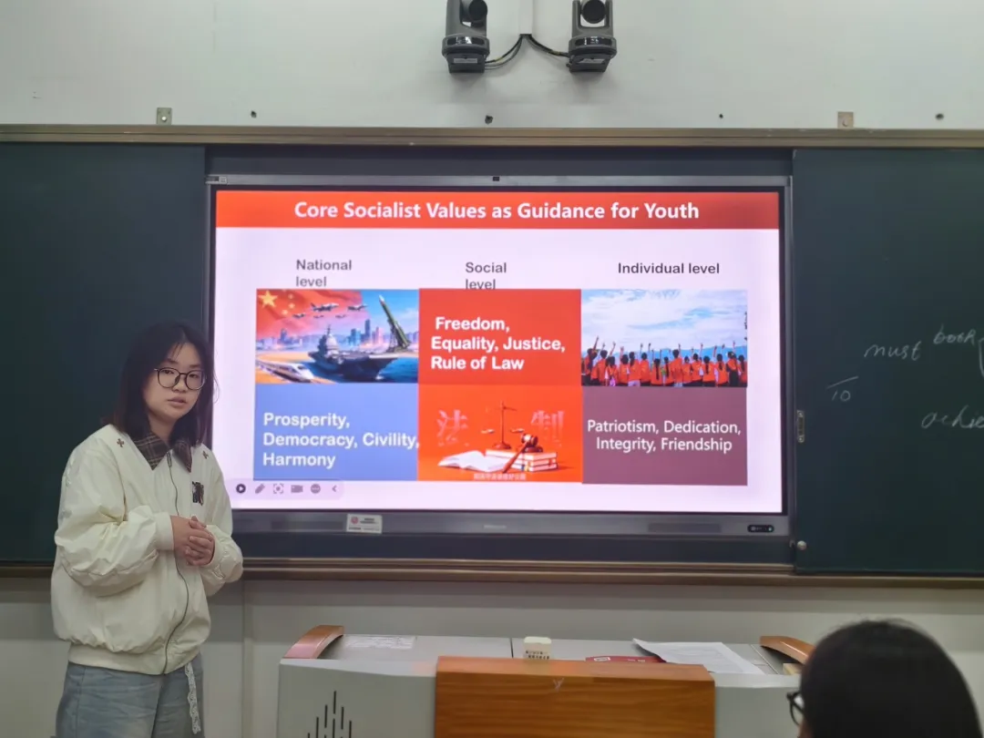 本学期四月中旬,我院2024级英语本科1班在《英语演讲与辩论》课程中,开展了社会主义核心价值观主题英语演讲活动,旨在将专业训练与价值引领相结合,用英语讲好中国故事。