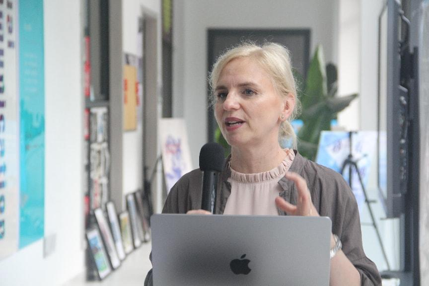 讲座伊始,突发停电状况成为Cristina Cacioli副校长阐释“创造力”的生动案例。她提出,设计师在缺乏数字工具支持时,更需主动寻找创新解决方案,就像本次讲座临时调整计划,以面对面亲切交流替代预设的视频与PPT展示,引发在场师生对“合理利用媒介”与“自身创造力”关系的思考。