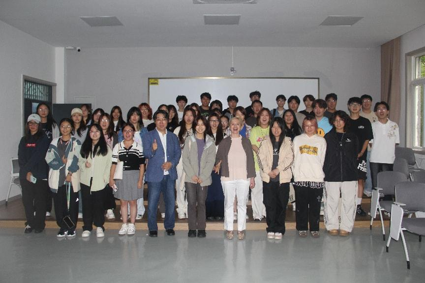 讲座最后,Cristina Cacioli副校长鼓励新生从现在起规划未来,珍惜在校学习时光,提升专业与语言能力,并现场教授意大利语问候语、“我爱你”等表达,与师生合影留念,为本次讲座画上温馨句号。